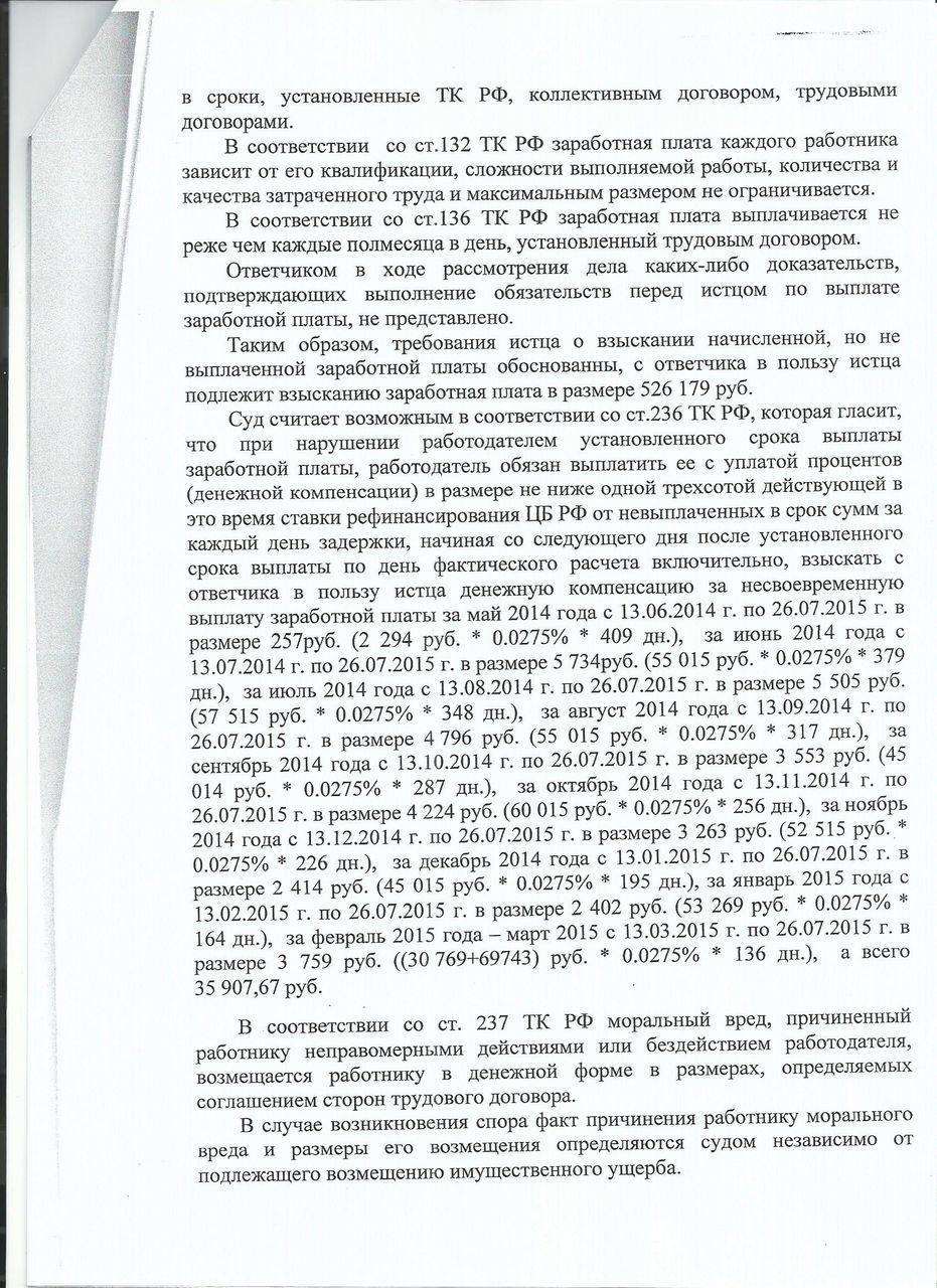 В доводах истца говорилось о том, что заработная плата была ему начислена, однако не выплачена. Судом было установлено, что истец работал в компании-ответчике с 12.04.2012 по 12.03.2015 гг. по трудовому договору. Был уволен по собственному желанию. Согласно предоставленному трудовому договору и справкам работодателя, в том числе и 2-НДФЛ, работнику (истцу) не была выплачена заработная плата в период с мая 2014 по 12.03.2015 гг.