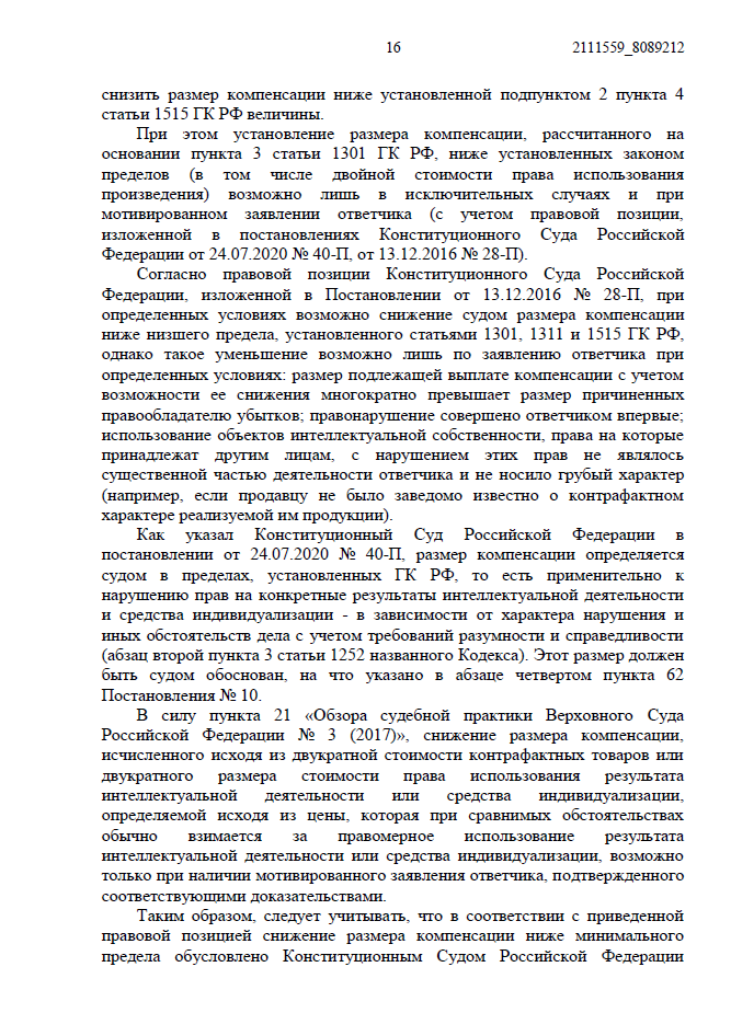 Мы ссылались на нормы статей 1229, 1252, 1270 и 1301 ГК РФ, подтвердив, что изображения использовались в коммерческих целях без согласия правообладателя.